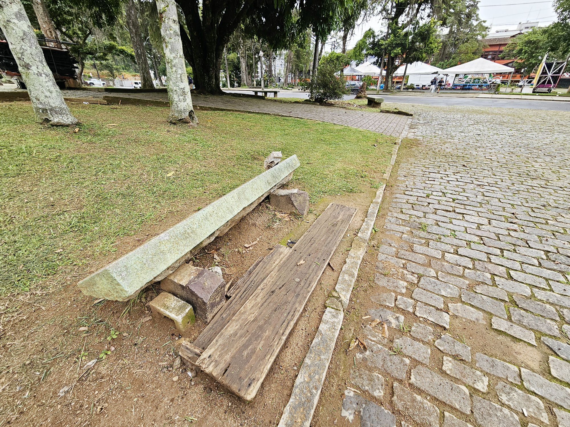 Enquanto restauração não é feita, tenda guarda o bem do tempo