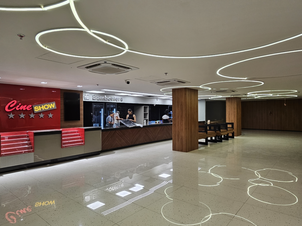 Outra mudança significativa é o novo acesso às salas de cinema. O público passa a acessar o Cine Show pelo terceiro andar do shopping, por meio de um corredor completamente novo, construído em uma área anteriormente ocupada por uma única loja. O espaço contará com restaurantes e novas operações comerciais, além de uma bomboniere e bilheteria totalmente renovadas. “A experiência será sem dúvida muito diferente do que os clientes tinham até hoje, e à altura do que eles merecem”, ressaltou o superintendente.
