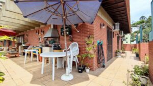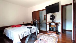 Composta por sala em 3 ambientes um deles com lareira, varandão em volta de toda propriedade com linda vista, 4 quartos sendo 1 suíte ampla e banheiro com 2 lavatórios, todos os quartos com acesso à varanda com vista livre, cozinha e lavanderia, dependência e banheiro de empregada 2 banheiros social e um lavabo (total de 5 banheiros), formam as características principais do imóvel.