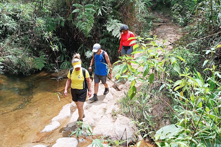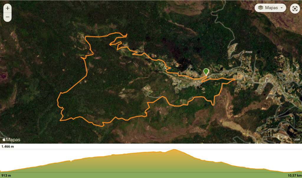O ponto mais alto dessa caminhada chega a 1.466 metros de altitude. Quando começa a descida, surgem também bonitos visuais para as montanhas do próprio PNMMT, como Arrieiro, Santa Rita e Tartaruga, ou mais distantes, como os Três Picos e Mulher de Pedra. A seguir a dica é ficar atento ao barulho da água. Quando ele estiver bem forte, significa que você está próximo à Cascata da Maria Preta. Então, pegue a esquerda e aproveite para se refrescar. Depois, a dica é continuar a trilha vizinha à queda d´água, até sair em uma estreita rua. Essa pequena via vai ter levar até ao campo do Posse F.C., já próximo ao início da caminhada.