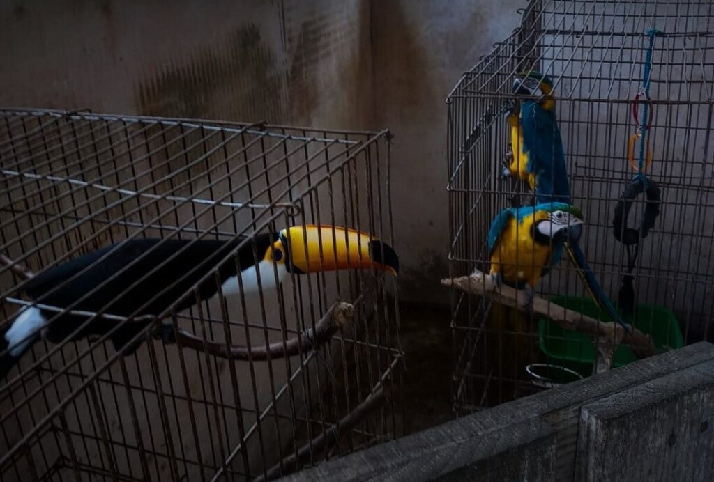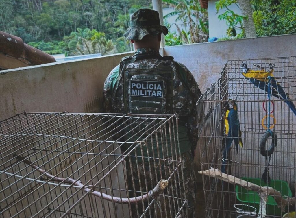 Durante patrulhamento ambiental de rotina na região, a equipe da 5ª UPAm (Unidade de Polícia Ambiental) Três Picos, recebeu uma denúncia sobre a manutenção irregular de animais silvestres em cativeiro em uma residência no município de Nova Friburgo. No local, foram encontrados um tucano, uma arara-canindé e três micos-sagui, mantidos sem a devida autorização dos órgãos ambientais competentes.