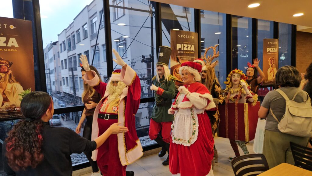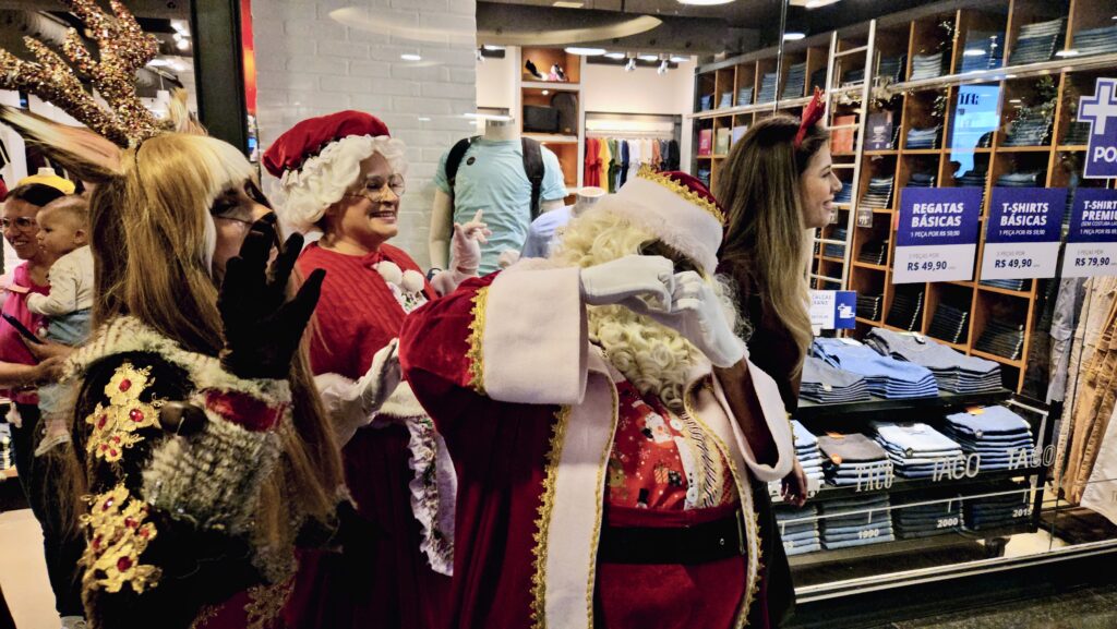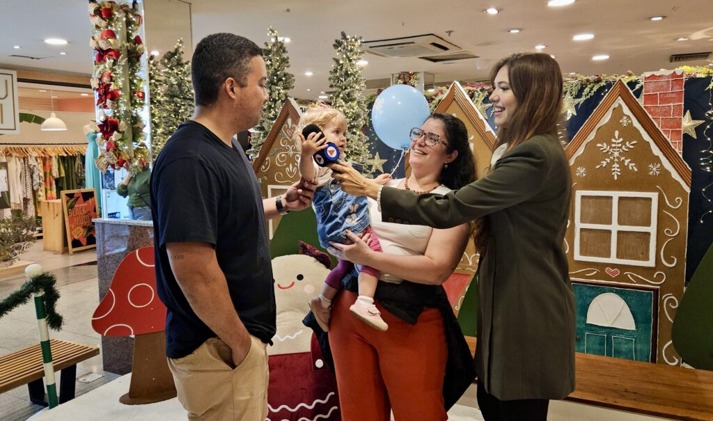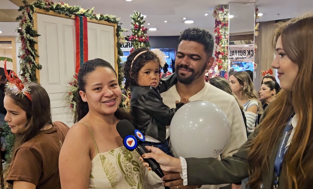 Juliana e Francisco, mãe e padrinho da pequena Júlia, também compartilharam o sentimento da data: “A mágica do Natal é incrível. A criança fica encantada… ela está maravilhada. É muito importante pra nós. Ela amou ver o Papai Noel”, disse Juliana. Para Francisco, o momento reforça os laços familiares: “Essa é uma data muito importante pra ela, nesse momento do crescimento. E também para a família, para ela aprender sobre união e afeto.”