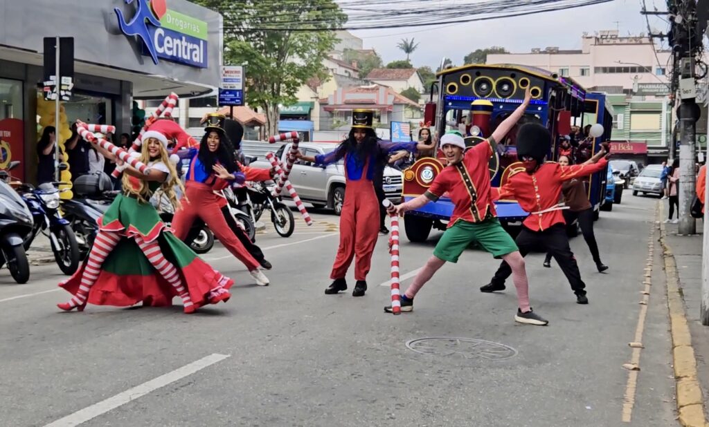A magia do Natal já começou a tomar conta da cidade! No último sábado (15), o Teresópolis Shopping realizou seu tradicional evento de chegada do Papai Noel, encontro que reuniu centenas de pessoas e encantou crianças e visitantes. O trenzinho saiu do Alto com personagens temáticos e seguiu até o shopping, onde houve apresentações especiais e diversas atividades gratuitas para os pequenos.