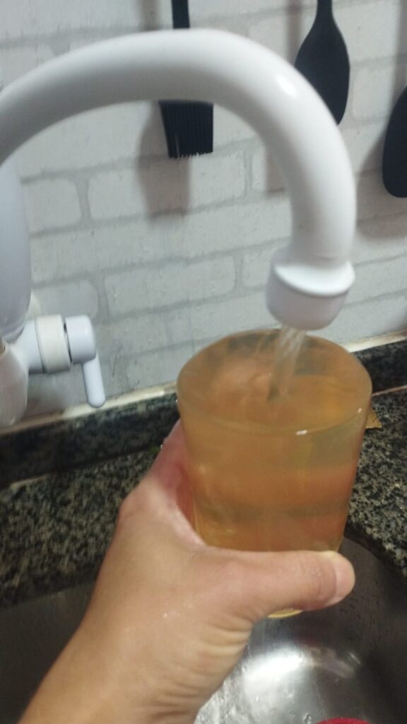 Moradores mostram a qualidade da água que tem chegado às residências. Foto: Leitor Repórter