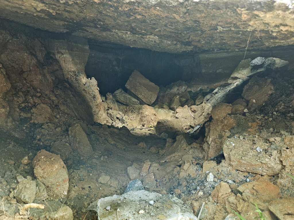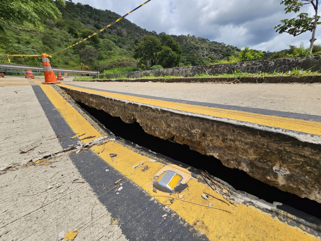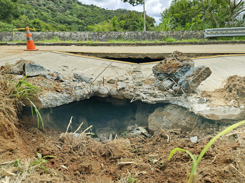 “Para onde a terra está indo?” Aparentemente, solo está cedendo em consequência de alguma infiltração muito abaixo da estrada. Foto: Marcello Medeiros – O Diário