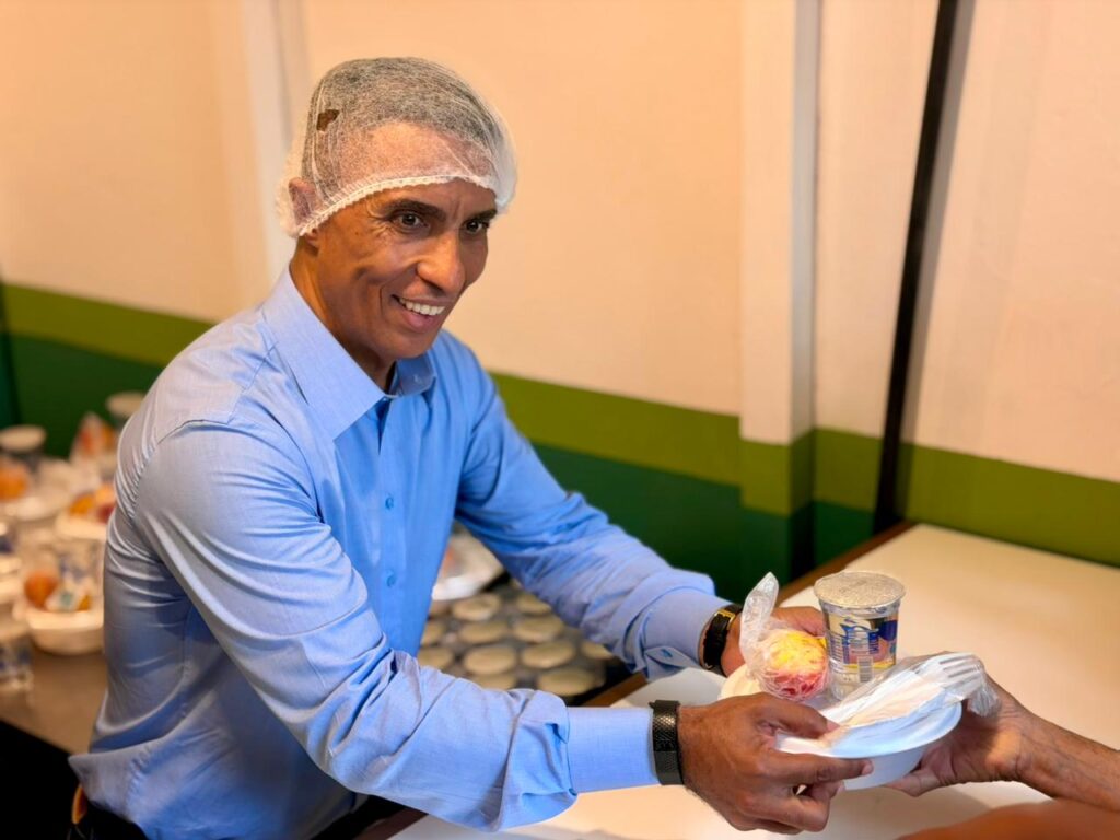 “Hoje garantimos refeições diárias a pessoas das mais diversas camadas sociais. São alimentos preparados numa cozinha industrial de qualidade, acompanhados por nutricionistas e cardápio balanceado. Começamos a erradicar a fome da cidade de Teresópolis, seja com o ônibus do programa municipal Prato Cheio, que leva alimentos da agricultura familiar a pessoas em vulnerabilidade social, seja com o RJ Alimenta e o Café do Trabalhador”, assinalou o Prefeito Leonardo Vasconcellos, acompanhado da primeira-dama Cláudia Vasconcellos, da vice-prefeita Afaf Ribeiro, dos secretários e subsecretários municipais.