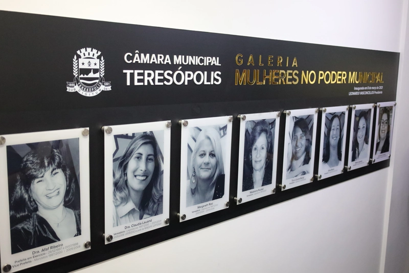 A galeria “Mulheres no Poder Municipal” s reúne os retratos de oito mulheres que deixaram sua marca na política e no poder público do município desde a década de 1990, entre vereadoras e gestoras do Poder Executivo: