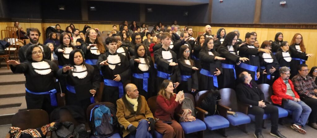 Formandos os cursos de Gestão Ambiental e de Assistente Administrativo do IFRJ, Campus Teresópolis. Foto: AsComPMT