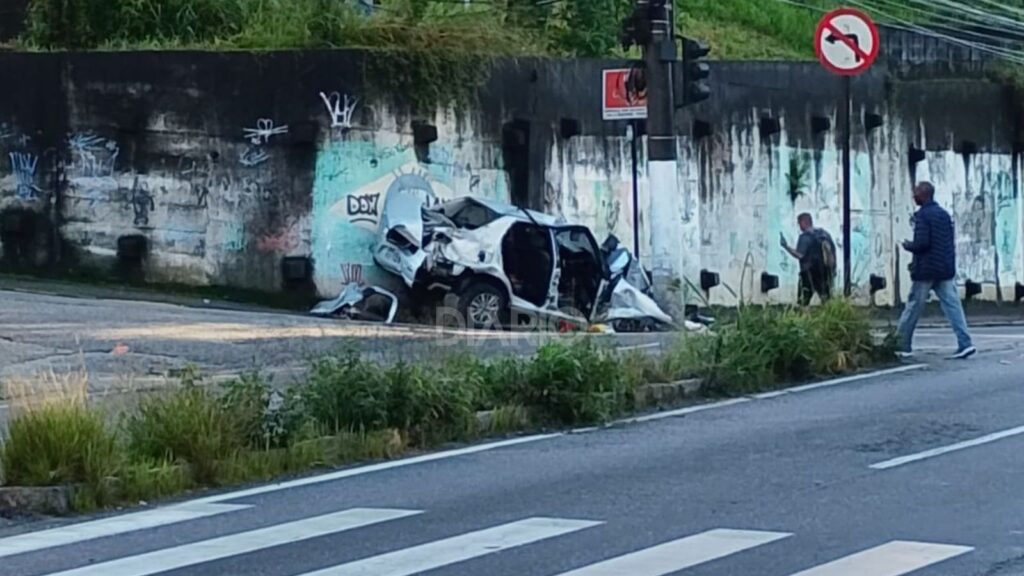 Um carro ficou completamente destruído e irreconhecível após um grave acidente registrado na madrugada deste sábado, por volta das 5h, na Avenida Alberto Torres, em frente ao Hospital São José, em Teresópolis. O trecho, conhecido também por dar acesso à Rua Judith Maurício de Paula, concentra grande movimento, inclusive próximo a um ponto de ônibus.