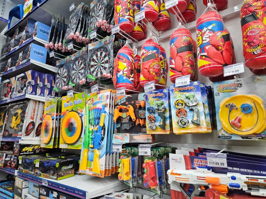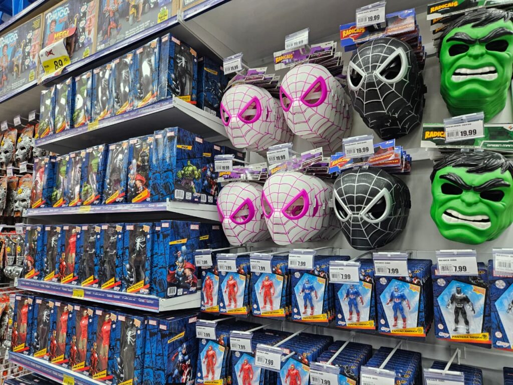 Ainda segundo a vendedora, outra opção que merece destaque são os super-heróis. “A molecada vai adorar. Tem o Capitão América, Homem Aranha e o Hulk, da Marvel. Também temos os bonecos da DC, como a Mulher-Maravilha, o Superman e o Batman”, pontuou Letícia. “Também temos carrinho de controle remoto, dardos e arminha de água”, adicionou.