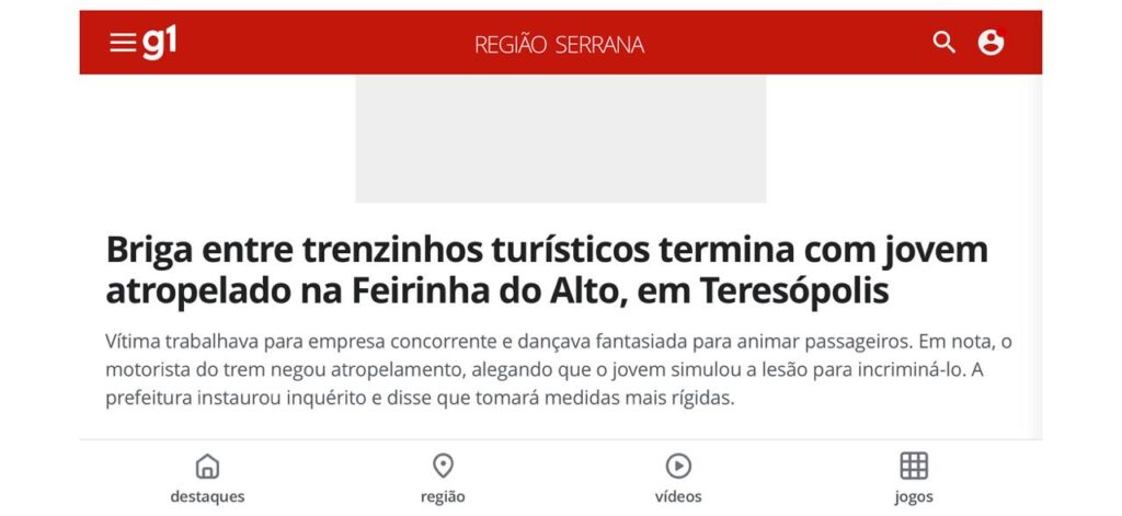 Teresópolis voltou a ganhar destaque nacional após mais um episódio de confusão envolvendo operadores de trenzinhos turísticos na Feirinha do Alto – situação que tem ocorrido com certa frequência nos últimos anos. O último caso, ocorrido na tarde de domingo (11), repercutiu nas redes sociais e foi tema de reportagem publicada pelo G1, um dos maiores veículos de notícia do país, além de outros portais que acabaram replicando a notícia.