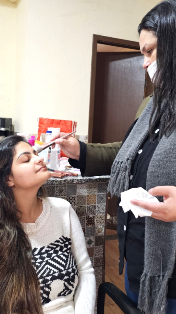 A manhã de acolhimento e informação contou ainda com cuidados pessoais, com limpeza de pele, e momentos de lazer com música. Foto: Divulgação