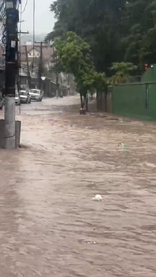 O bairro Ermitage registrou vários alagamentos, onde as ruas se transformaram em rios, resultando em transtornos no trânsito da região. Foto: Reprodução