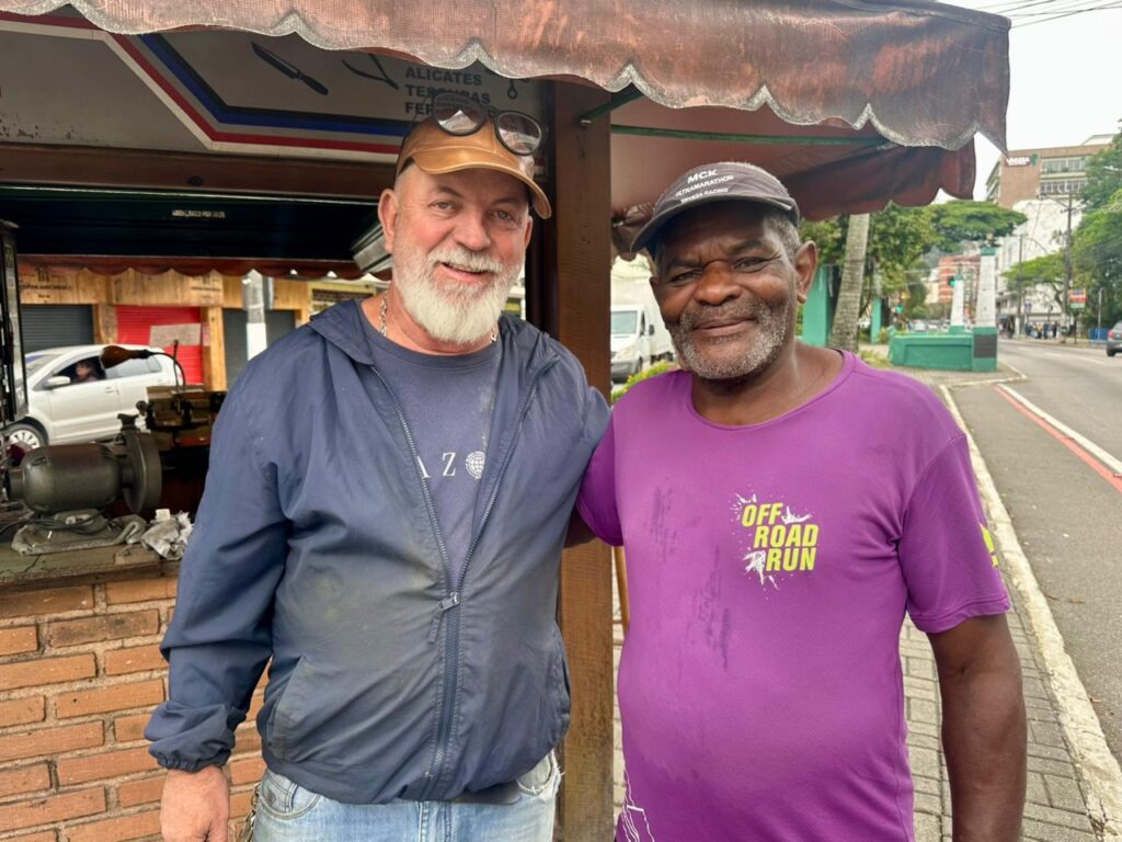 Junto com Delino, está Luiz Cláudio, mais conhecido como ‘Bacura’, do Chaveiro Mundial, um grande apoio do atleta em suas maratonas solidárias. “Esse é um amigo do meu coração. A gente se conhece mais de 40 anos. Ele sempre me ajuda com os eventos aqui. Tenho muita gratidão por isso”, contou Delino Tomé. “Eu fico feliz de ter pessoas ainda empenhadas em ajudar os mais carentes, como é o caso do Delino. Então, faço minha parte, cedendo luz e um lugar melhor para ele arrecadar os alimentos. Espero que esse ano ele consiga muitas doações”, completou Bacura.