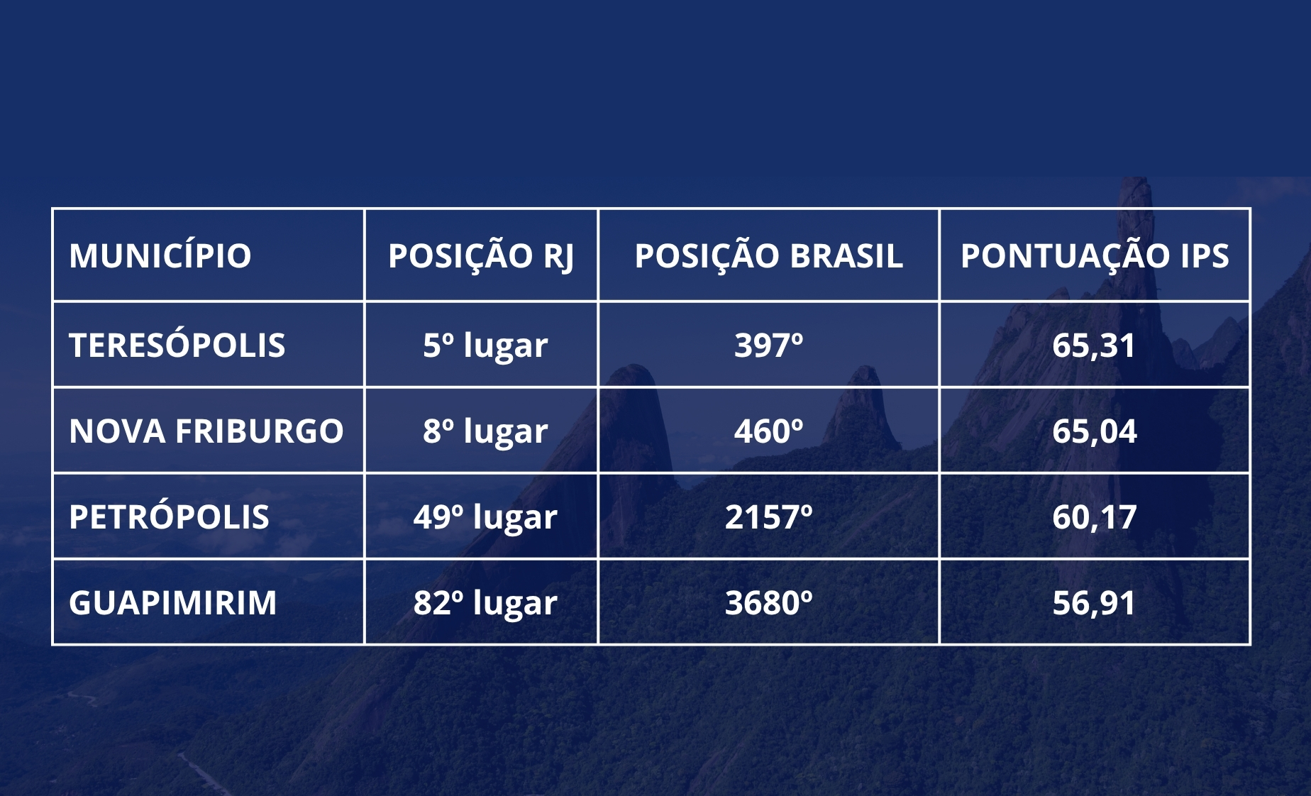 IFPS BRASIL 2025: Teresópolis lidera ranking de qualidade de vida na Região Serrana