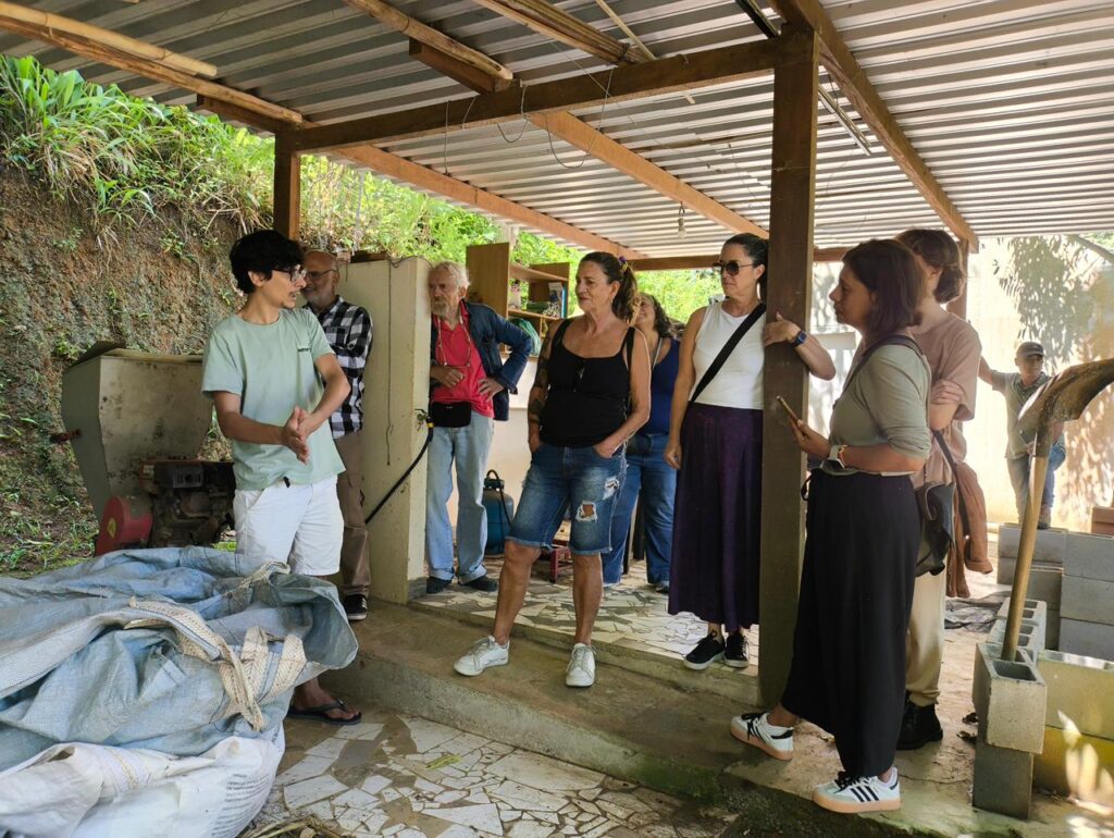 Ao chegar ao Sítio Kekanekadan, o grupo foi recebido pelos idealizadores do espaço Gabriel Lira e Suzana Barros, e participou de um tour guiado conduzido por Gabriel, que apresentou a proposta do local, pautada na sustentabilidade, na produção orgânica e na conexão genuína com a natureza.