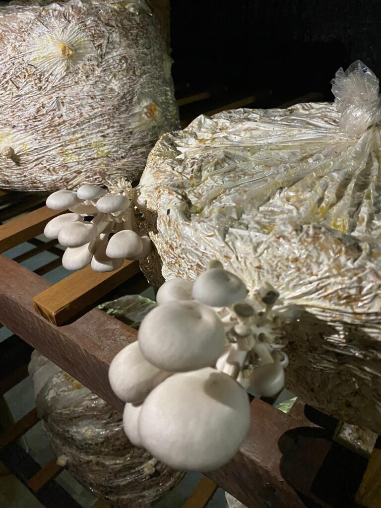 Um dos destaques do passeio foi a visita à estufa de produção de cogumelos, cultivados de forma 100% orgânica. Os visitantes acompanharam todas as etapas do processo — da compostagem e pasteurização à colheita — com foco no reaproveitamento de materiais orgânicos e no respeito ao meio ambiente. A experiência foi coroada com uma degustação especial de cogumelos cultivados da estufa do sítio.