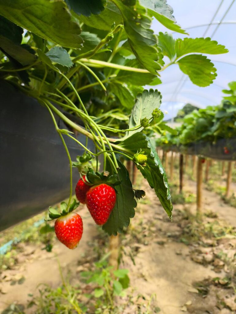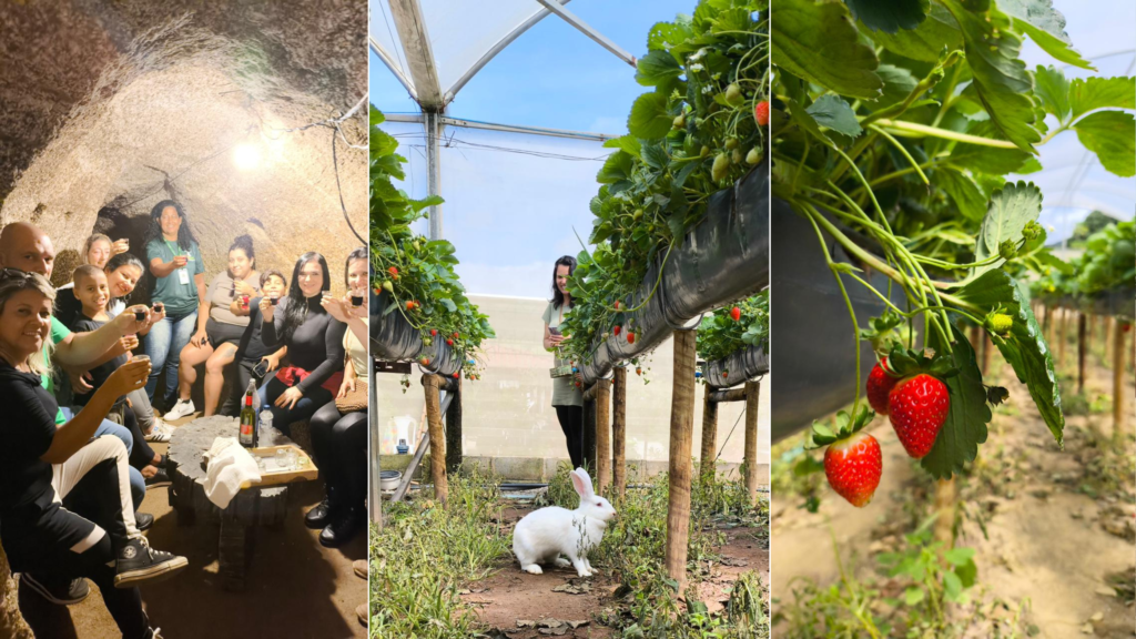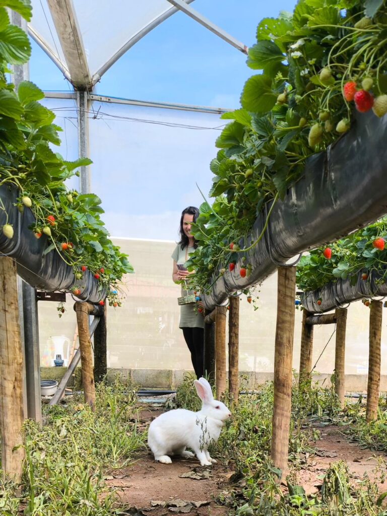 Outra atração que conquistou os visitantes foi a tradicional colheita de morangos direto da estufa. No sistema “colhe e pague”, cada participante teve a oportunidade de escolher e colher os próprios frutos, além de aprender mais sobre o cultivo e os cuidados necessários para garantir qualidade e sabor. Uma vivência simples, mas transformadora, colher o que a terra oferece com as próprias mãos é, para muitos, uma redescoberta.