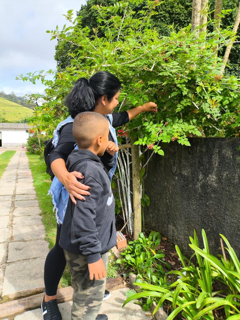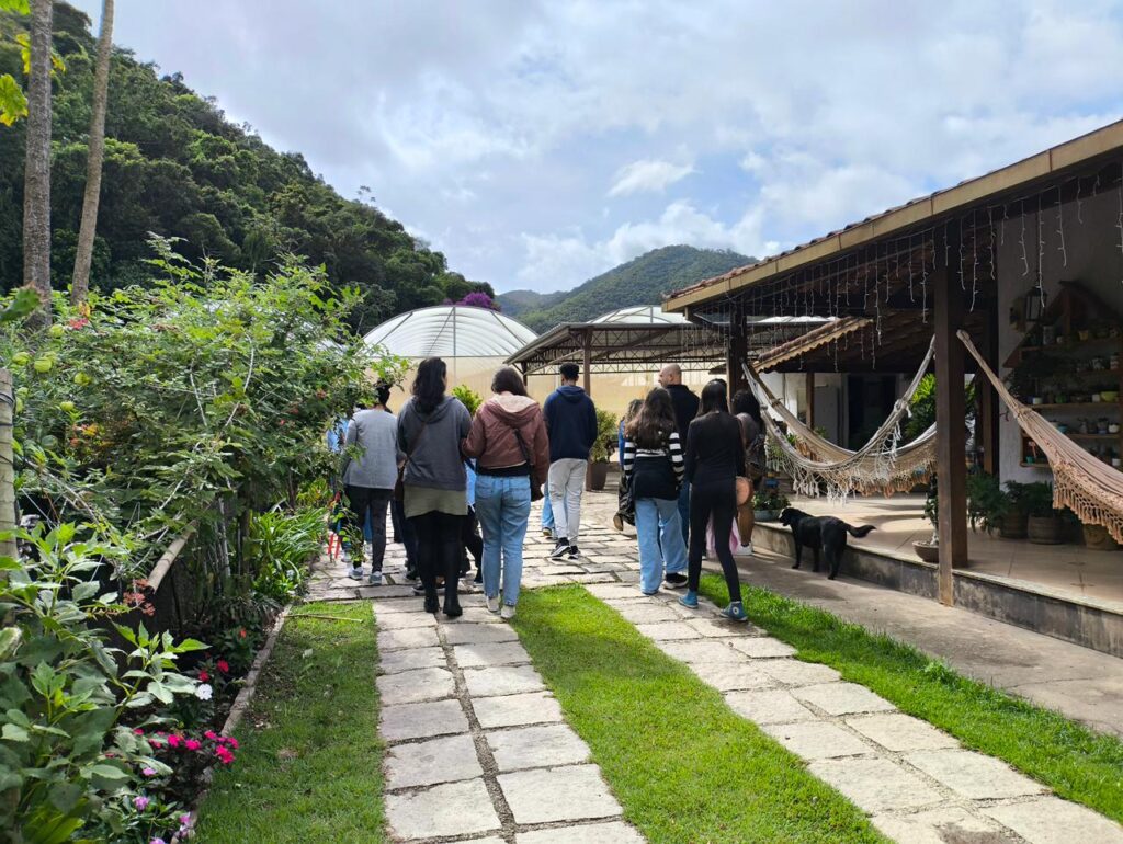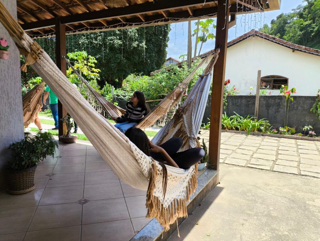 Além das experiências gastronômicas, o passeio ofereceu momentos de contemplação e tranquilidade. Redes espalhadas pelo sítio convidavam ao descanso, enquanto a área verde revelava paisagens acolhedoras. Os visitantes também puderam conhecer pequenos moradores do espaço, como um jabuti e coelhinhos, e até participar do ritual de coar o café, transformando o gesto cotidiano em memória afetiva.