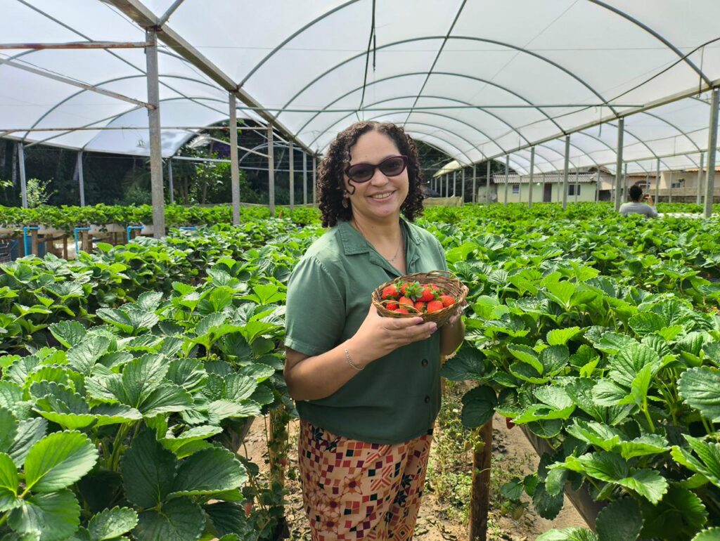 A visitante Patrícia Almeida também ressaltou o acolhimento recebido. “Os anfitriões receberam a gente com muito carinho. Está sendo uma paz estar aqui”, afirmou, enquanto aproveitava o clima tranquilo do sítio. Já para Milene Bressanin, o passeio foi além de um momento de lazer. Segundo ela, conhecer o interior da cidade e colher o próprio morango direto do pé proporcionou uma experiência quase terapêutica, marcada pela conexão e bem-estar. O passeio foi conduzido pela guia da Secretaria de Turismo, Joyce, que acompanha o projeto, e contou, nesta edição, com a participação da atendente bilíngue Ivna Cervasio, ampliando o atendimento aos visitantes.