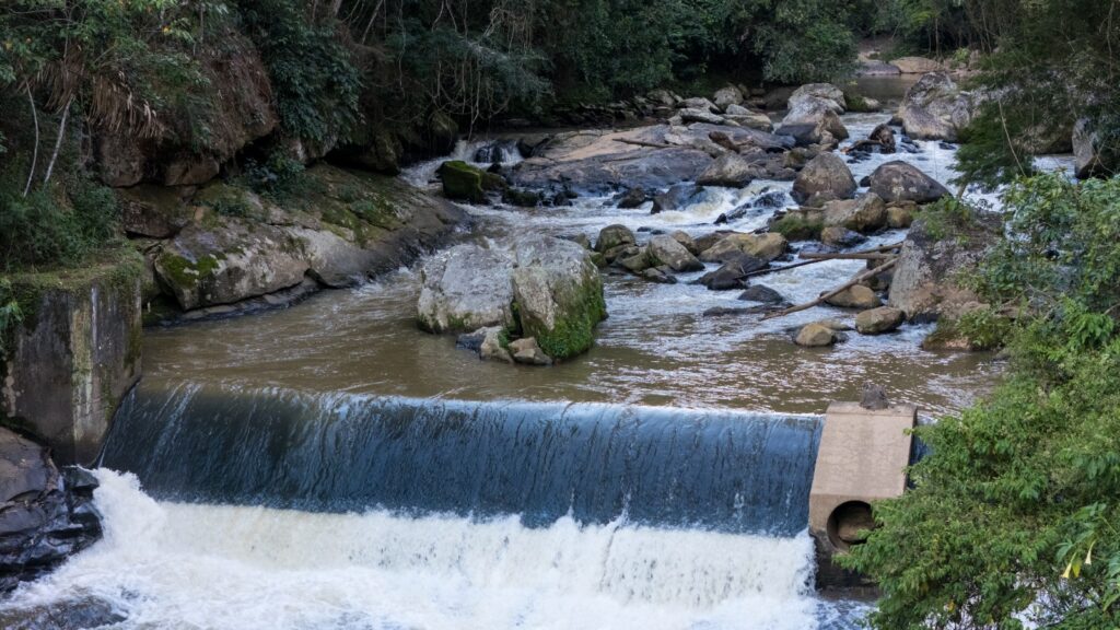 O Rio Preto é o principal sistema de abastecimento do município, responsável por 95% do atendimento. Ele fica em Providência, no Segundo Distrito, ao lado da foz do Paquequer. Mas não é do nosso principal rio que vem a água que chega às residências e estabelecimentos comerciais. A captação é feita no curso d´água ao lado, o Rio Preto. A estação desvia parte do líquido para um desarenador, que, como diz o nome, retém as partículas de areia. Nesse ponto também há gradeamento para evitar que galhos de árvore e outros materiais sejam levados até a elevatória. Em seguida, um conjunto de moto-bombas empurra a água, em um ritmo de 435 litros por segundo, para a localidade de Três Córregos.
