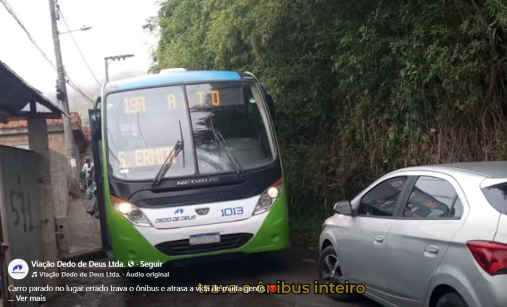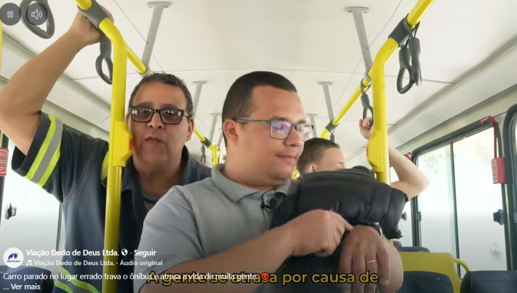 As empresas de ônibus do município, a Dedo de Deus e a Primeiro de Março, lançaram uma campanha de conscientização sobre o estacionamento irregular por meio de um vídeo humorado publicado nas redes sociais, retratando situações comuns enfrentadas pelos condutores de ônibus e pelos passageiros. Foto: Reprodução / VDDL/1º de Março