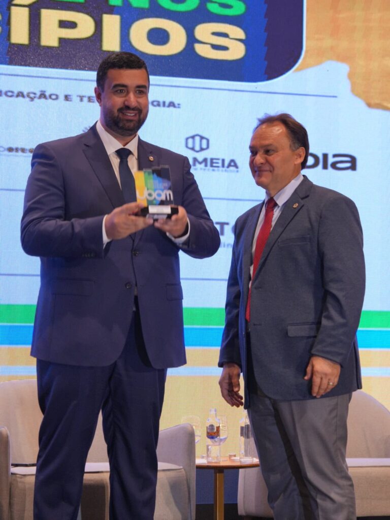Durante a solenidade, foi entregue o Prêmio Prefeito Destaque 2025, uma homenagem a gestores que se destacaram pela qualidade administrativa, pela implementação de políticas sociais consistentes e pelo compromisso com o bem-estar da população.