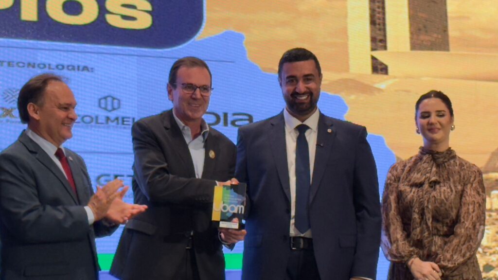 Durante a solenidade, foi entregue o Prêmio Prefeito Destaque 2025, uma homenagem a gestores que se destacaram pela qualidade administrativa, pela implementação de políticas sociais consistentes e pelo compromisso com o bem-estar da população.