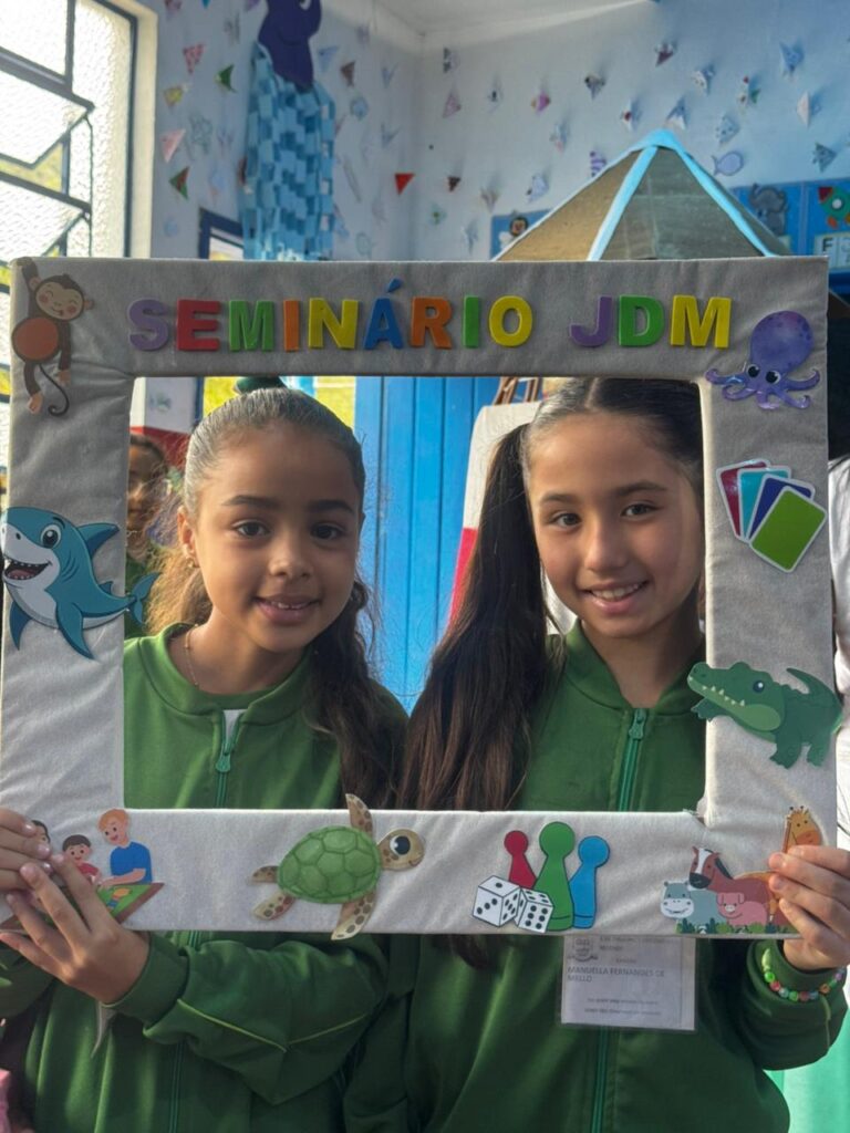 Uma celebração a um ano inteiro de descobertas, aprendizados e de valorização do trabalho pedagógico em que os alunos da Escola Municipal José Duarte Magalhães, unidade de tempo integral localizada em Prata dos Aredes, no interior do município, apresentaram para os estudantes da Escola Municpal Paulino Custódio, que fica em Canoas, também na área rural, e para a comunidade da região, o Seminário JDM 2025. Os trabalhos produzidos durante o ano letivo tiveram como temas o Fundo do Mar, Jogos da Infância e Animais do Zoológico.