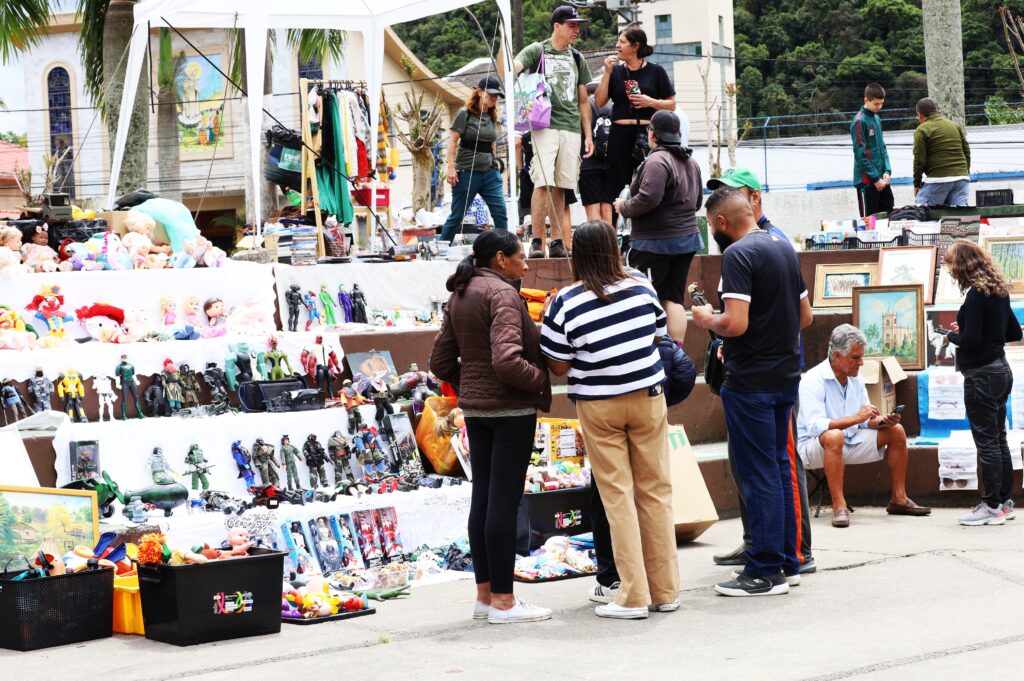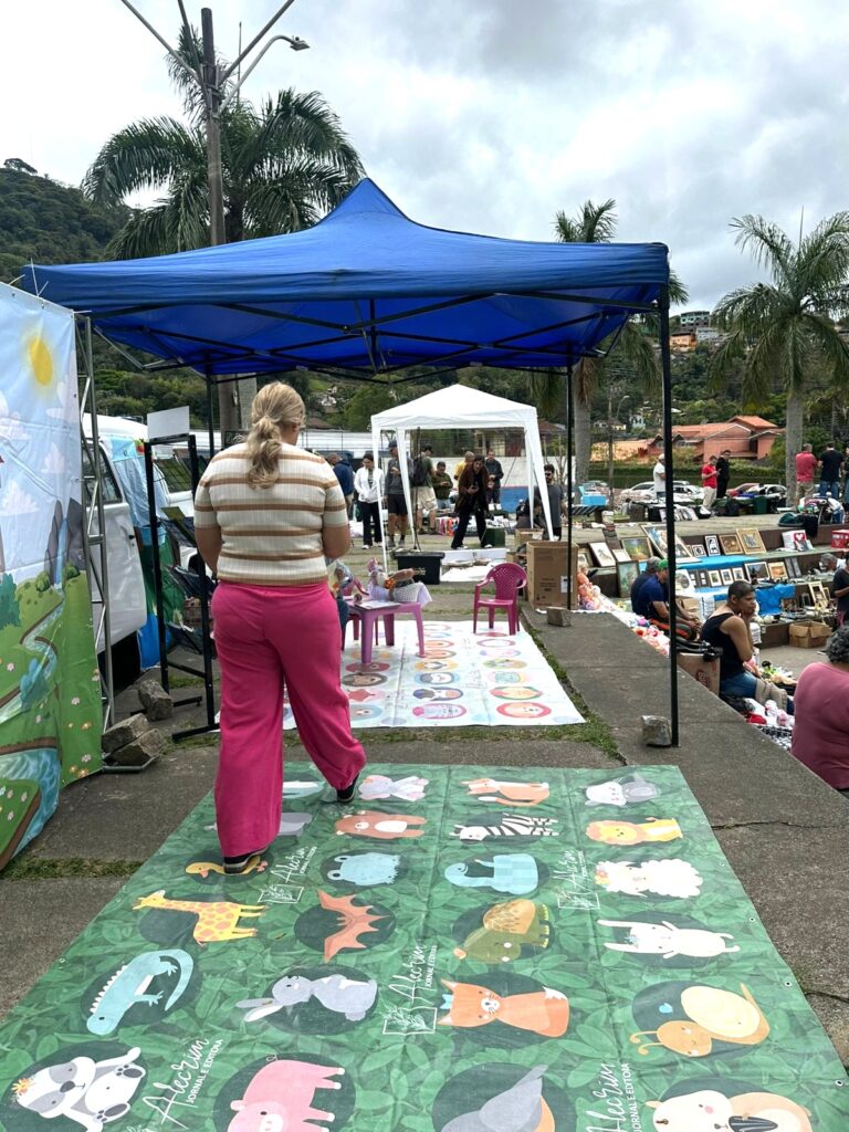 Na lateral da Casa de Cultura, o coletivo de artistas da feira Artes da Serra de Teresópolis apresentou ao público peças únicas para venda e exposição. “Nosso grupo foi criado há quase 2 anos com o objetivo de trazer mais cultura para a cidade. Trabalhamos com arte visual, literatura, música, teatro, dança e temos artesanato produzido por um grupo de artesãs, como crochê, costura criativa, pintura e bordado”, relatou Alessandra Rodrigues. Apoio do Fórum de Cultura de Teresópolis, Alecrim Jornal e Editora, Terê Total, Point das Mesas, Grupo Top Street Dance e das secretarias municipais de Cultura e de Turismo.