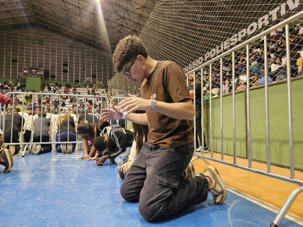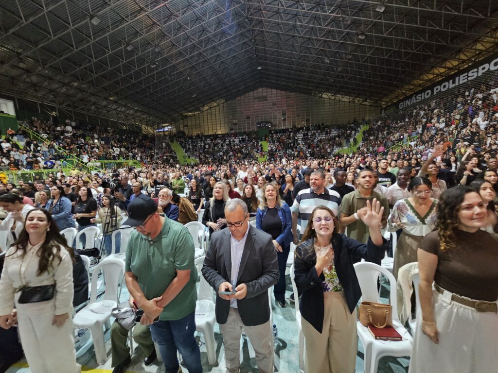 No último sábado, 15 de novembro, o Ginásio Poliesportivo Pedro Jahara (Pedrão) recebeu o Clama Teresópolis, evento que reuniu milhares de pessoas em uma noite marcada por louvor, palavra e celebração da fé. Realizado pela Prefeitura de Teresópolis em parceria com o COPETE (Conselho de Pastores Evangélicos de Teresópolis) e com apoio do projeto Metanoia Radical, o encontro teve entrada gratuita, transporte público liberado e ação social com a doação de 1kg de alimento não perecível.