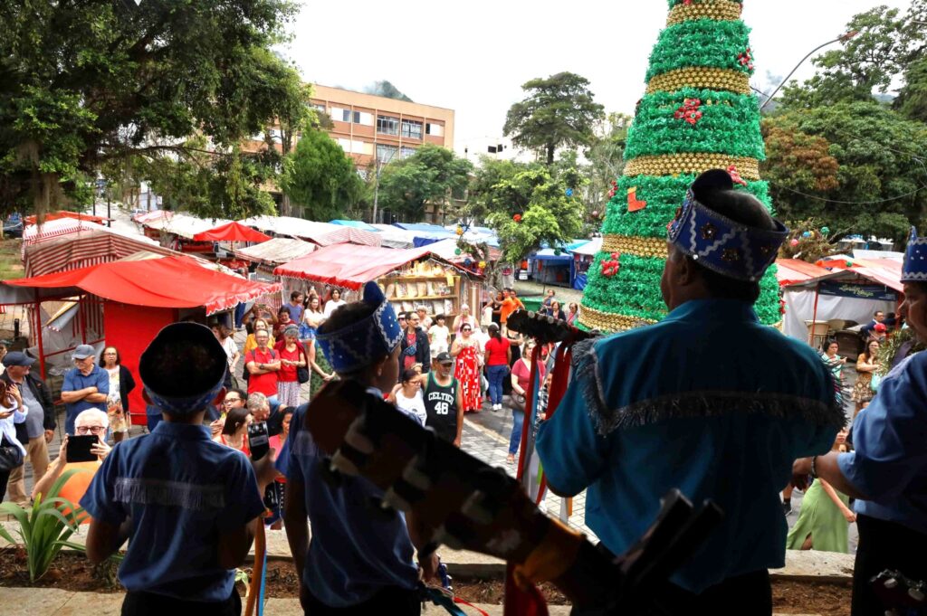 Com música, devoção e cultura popular, no último domingo (04), a Folia de Reis Estrela Guia, a única em atividade em Teresópolis, manteve viva a tradição do festejo no município em três belas apresentações: na Igreja de Santo Antônio e na Feirarte, no Alto, e na Igreja de Santa Teresa, no centro da cidade. O espetáculo arrancou aplausos do público e foi garantido por iniciativa da Secretaria Municipal de Cultura, que assegurou o transporte do grupo, tombado como patrimônio imaterial do Município.