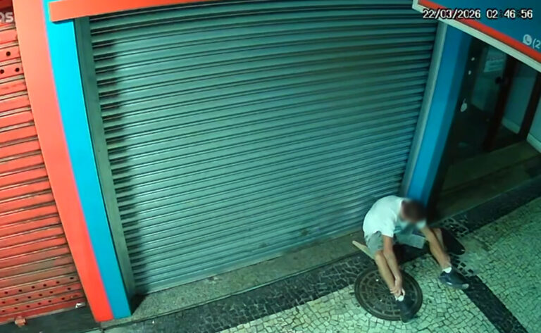 Na mesma rua, um segundo episódio foi registrado na madrugada de domingo (22), por volta das 3h. Um homem com características semelhantes foi flagrado pelo sistema de monitoramento de estabelecimentos comerciais tentando arrombar uma farmácia localizada no início da Avenida Delfim Moreira. Nas imagens, o suspeito utiliza um pedaço de madeira para forçar a entrada no local. Ele permaneceu cerca de 15 minutos nas imediações, interrompendo a ação sempre que veículos ou pedestres se aproximavam. Apesar da insistência, o indivíduo não conseguiu concluir o arrombamento e deixou o local. A semelhança entre os dois casos levanta a suspeita de que ambos tenham sido praticados pela mesma pessoa. Até o momento, não há confirmação oficial da identidade do autor e os crimes estão sendo investigados pela Polícia Civil.