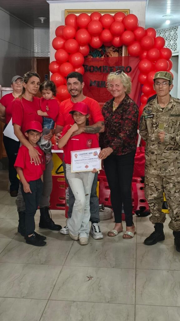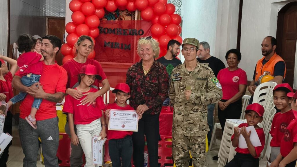 A Paróquia de São Charbel, às margens da BR-116 na localidade de Pessegueiros, no Segundo Distrito, foi palco da formatura de 21 crianças da região que participaram do projeto Bombeiro Mirim – uma ação voluntária realizada por Bombeiros Civis de Teresópolis com o objetivo de capacitar os pequenos para atuar em diversas situações. “É um curso muito rápido, de cinco domingos incluindo a formatura. A criança aprende sobre os cuidados com o GLP, o uso de extintores, a identificar traumas e agir em casos de pequenos acidentes que podem ocorrer em casa, na rua ou na escola, por exemplo. Em um lugar onde não exista nenhum adulto preparado para ajudar, ela pode fazer a diferença”, explica a Bombeiro Civil Diana Carreiro.