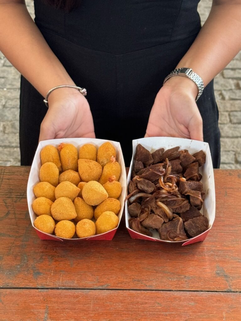 De 12h às 15h o resort oferece opções gastronômicas para se servir a vontade, como pastelzinho de queijo e carne, filézinho aperitivo, frango a passarinho, batata rústica, aipim com calabresa, bolinho de feijoada, torresminho, arancini de bacon, além de caldinhos de mocotó, feijão e aipim com carne-seca. Bebidas não incluídas.