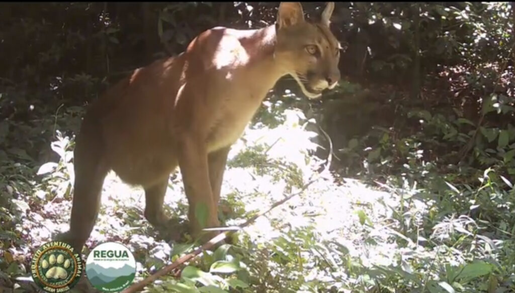 Armadilhas fotográficas registraram uma Onça-parda (Puma concolor) ainda grávida do seu filhote e, algum tempo depois, caminhando com o filhote ao seu lado. O flagrante foi feito pelo projeto Aventura Animal nas partes altas da Reserva Ecológica de Guapiaçu, a REGUA, em Cachoeiras de Macacu, que faz limites com o Parque Estadual dos Três Picos – que nessa região se estende por Teresópolis, em regiões como Canoas. A gestação de uma Onça Parda dura cerca de três meses, resultando geralmente em um a dois filhotes, embora possam nascer até quatro. As fêmeas dão à luz em locais isolados.
