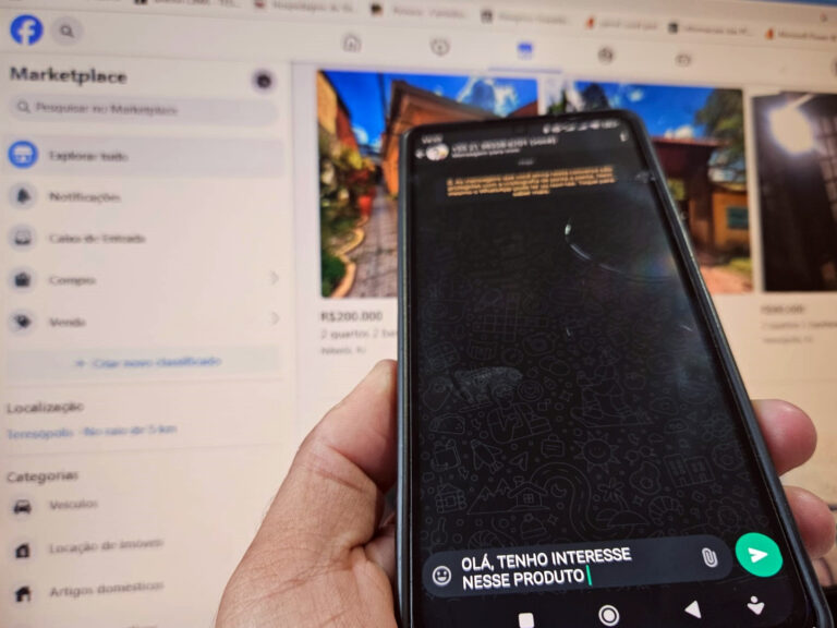O que chamou atenção recentemente foi a adaptação dos criminosos para o mercado de vendas. O corretor relata que, no caso mais recente, o golpista se apropriou das fotos de um imóvel que ele anunciava — incluindo documentos obtidos em publicações anteriores — e criou um anúncio falso no ‘marketplace’. O preço divulgado era menos da metade do valor real, estratégia usada para atrair rapidamente interessados.