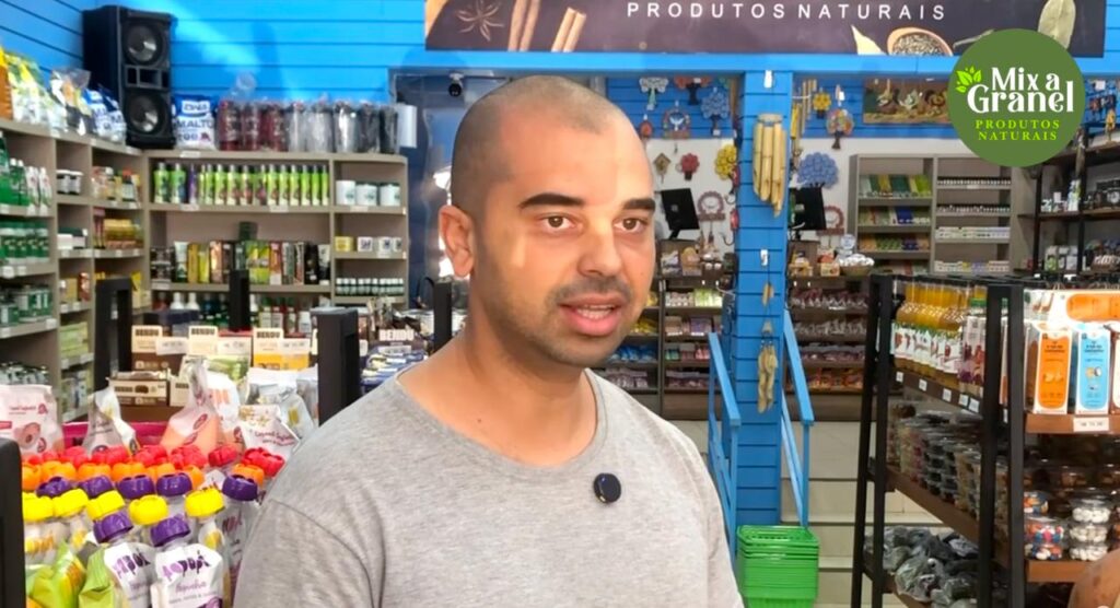A equipe da Diário TV conversou com Adalberto Barbosa, colaborador da Mix a Granel, que destacou o crescimento da loja ao longo dos anos. Foto: Gilberto Oliveira/O Diário