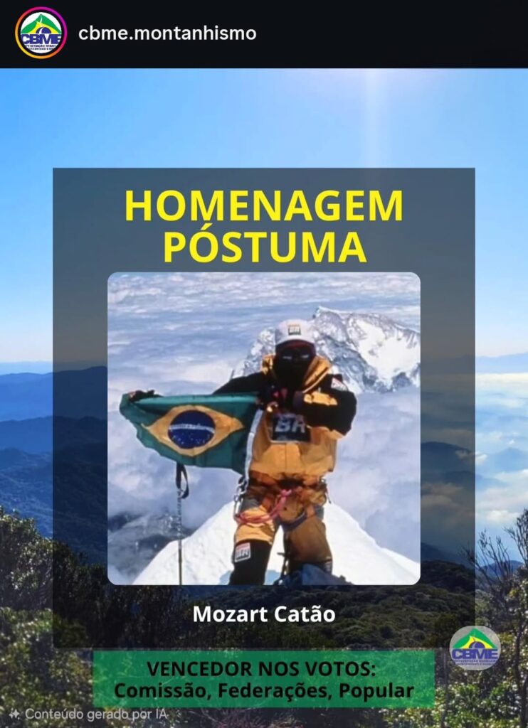 A honraria, criada em 2015 e inspirada no prestigiado prêmio internacional Piolets d’Or, destaca atletas e personalidades que contribuíram significativamente para o desenvolvimento da modalidade. Em 2026, Mozart foi agraciado na categoria de homenagem póstuma, escolhida por votação popular aberta ao público e às federações. Em entrevista ao Diário, o irmão do alpinista, Marco Catão, falou sobre a importância da premiação. “É uma homenagem muito forte, muito representativa. A gente fica muito feliz. Foi uma votação aberta, e saber que tantas pessoas participaram e votaram no Mozart deixa a gente ainda mais orgulhoso”, destacou.