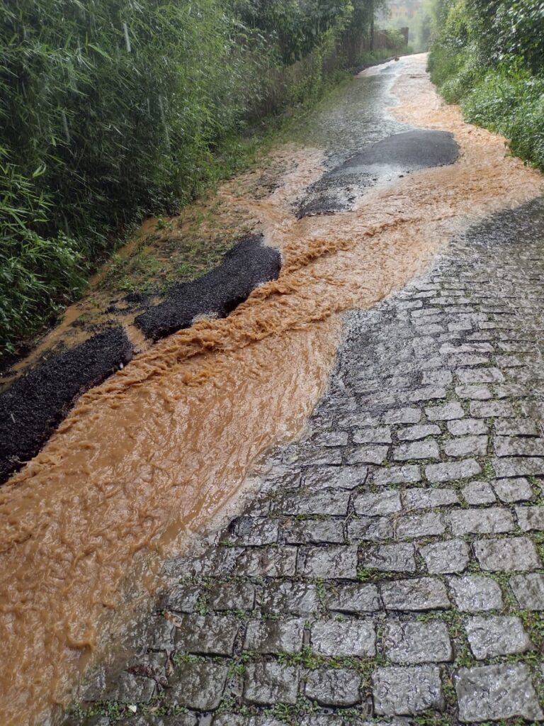 Moradores do Condomínio A Flor do Imbuí, no bairro Parque do Imbuí, voltaram a registrar um grave problema em consequência do deslizamento de parte da Estrada Henrique Claussen, que no dia 27 de janeiro passado tombou em direção ao local. A colocação de uma espécie de ‘barreira’ de asfalto para desviar a água da chuva para a pista não foi suficiente pare evitar que a enxurrada voltasse a invadir o condomínio. O temporal da tarde desta terça-feira (24) fez com que muita água e lama fossem projetadas em direção às residências.