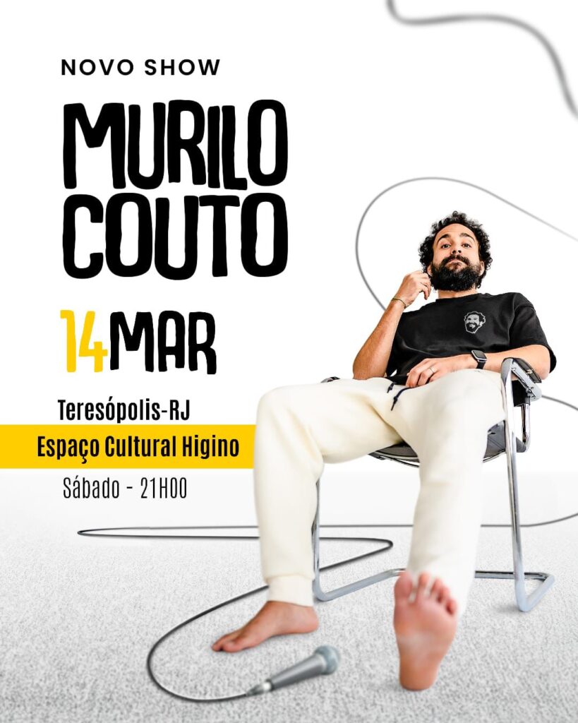 O humorista Murilo Couto retorna aos palcos com um novo espetáculo de stand-up e passa por Teresópolis com a apresentação “Um show sobre casamento”, que será realizada no Espaço Cultural Higino, no bairro do Alto.