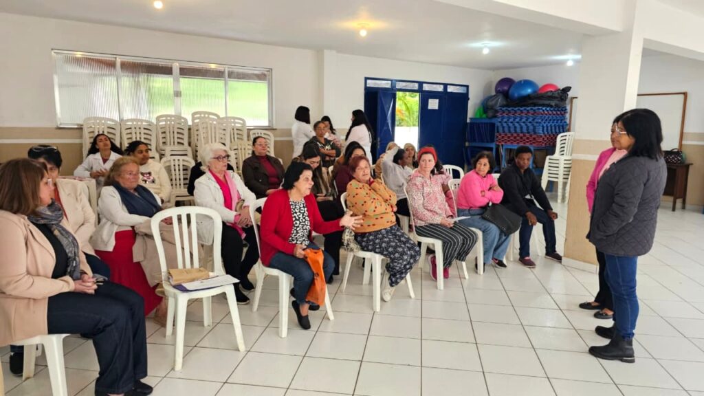 A equipe do Centro de Referência da Assistência Social (CRAS) Barra participou nesta segunda-feira (20), no Caleme, de uma ação de conscientização sobre a importância da prevenção e do diagnóstico precoce do câncer de mama, dentro da campanha Outubro Rosa. Realizado em parceria com a equipe da unidade da Estratégia de Saúde da Família (ESF) do bairro e os acadêmicos do curso de Medicina do Unifeso (Centro Universitário Serra dos Órgãos), o evento contou com palestra sobre autocuidado, testes rápidos, marcação de mamografia, coleta de exame citopatológico (preventivo), atualizações do Cadastro Único, verificação dos sinais vitais e entrega de brindes.