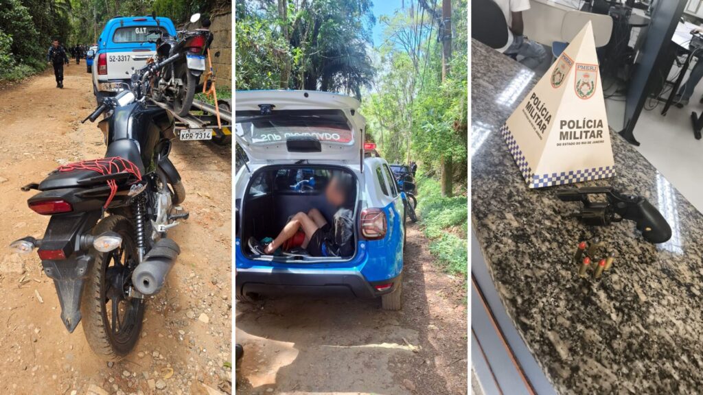 Além de um revólver calibre 38, com numeração raspada e cinco munições, a Polícia Militar apreendeu a motocicleta utilizada pelo suspeito, uma Honda Bros de cor preta, que estava sem a placa. O homem teria tirado a identificação justamente para cometer o crime e conseguir escapar sem ser responsabilizado por ele. Arma, suspeito e motocicleta foram encaminhados para a 110ª Delegacia de Polícia, com o homem autuado em flagrante por porte ilegal de arma, ameaça e lesão corporal. O motivo para a ameaça e agressão, que poderiam ter acabado em morte, não foram informados. Outras equipes do 30º BPM foram deslocadas ao Salaco, fazendo buscas também em bairros vizinhos como Salaquinho, Granja Florestal e Posse, não conseguindo encontrar o segundo suspeito até o fechamento desta edição. A vítima, um jardineiro, passou por exame de corpo delito.