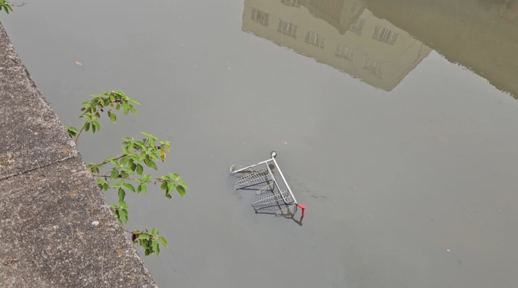 Agredido de todas as formas ao longo do seu curso, Paquequer recebe todo tipo de objetos, inclusive um carrinho de supermercado foi flagrado dentro do rio, próximo ao extravasor da Barra do Imbuí. Foto: Luiz Bandeira / O Diário