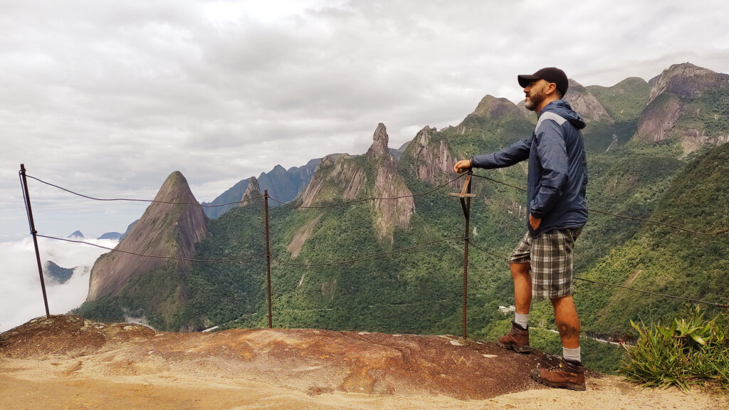 No último lance antes do “cume falso” – visto que o topo mesmo, a 1.180 metros de altitude, fica um pouco acima e quase não é visitado – um trecho muito úmido. Nos últimos dias, com as chuvas intensas, estava alagado. Assim, é necessário passar com cuidado para evitar voltar para casa com os pés molhados… Chegando ao mirante, onde há proteção com vergalhão e arame, instalada pelo pessoal do Centro Excursionista Teresopolitano 15 anos atrás, a dica é ter cuidado com o abismo e curtir a impactante vista para a cadeia de montanhas mais famosa do Brasil.