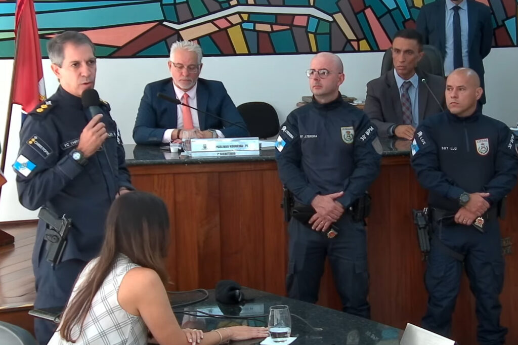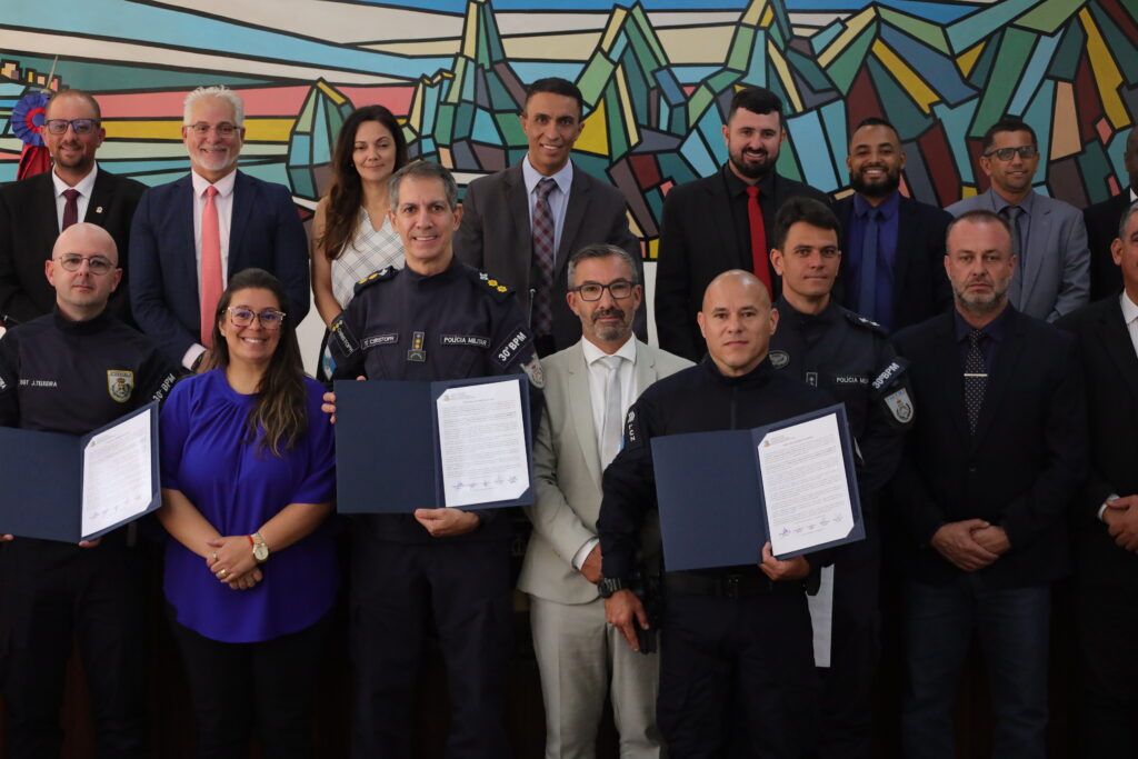O ato dos ‘heróis do cotidiano’ foi reconhecido pela Câmara, que homenageou não só os sargentos J. Teixeira e Luz, mas também o comando do 30º BPM pelo trabalho de proximidade praticado com a comunidade nos últimos meses. Foto: Jefferson Hermida / CMT
