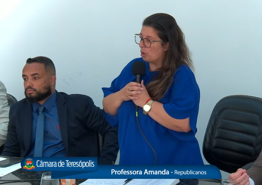A Professora Amanda destacou o trabalho de proximidade exercido pela atual coordenação da PM no município, reforçando a importância de ações humanizadas no trato com a população. Foto: Reprodução Diário TV