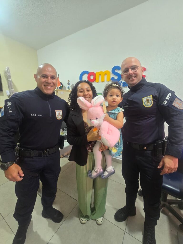 Muito grata, na última semana a mamãe Tatielen Fonseca levou a pequena Olívia ao quartel para agradecer pessoalmente aos militares do 30º BPM, que ainda a presentearam com um coelhinho de pelúcia. “Fiquei muito desesperada, ela engasgou e não estava respirando. Uma vizinha me ajudou a levou até o posto de gasolina onde estavam os policiais, que prontamente e nos ajudaram e fizeram a manobra para desengasgar a Olívia. Agradeço muito por terem salvo minha filha”, agradeceu.