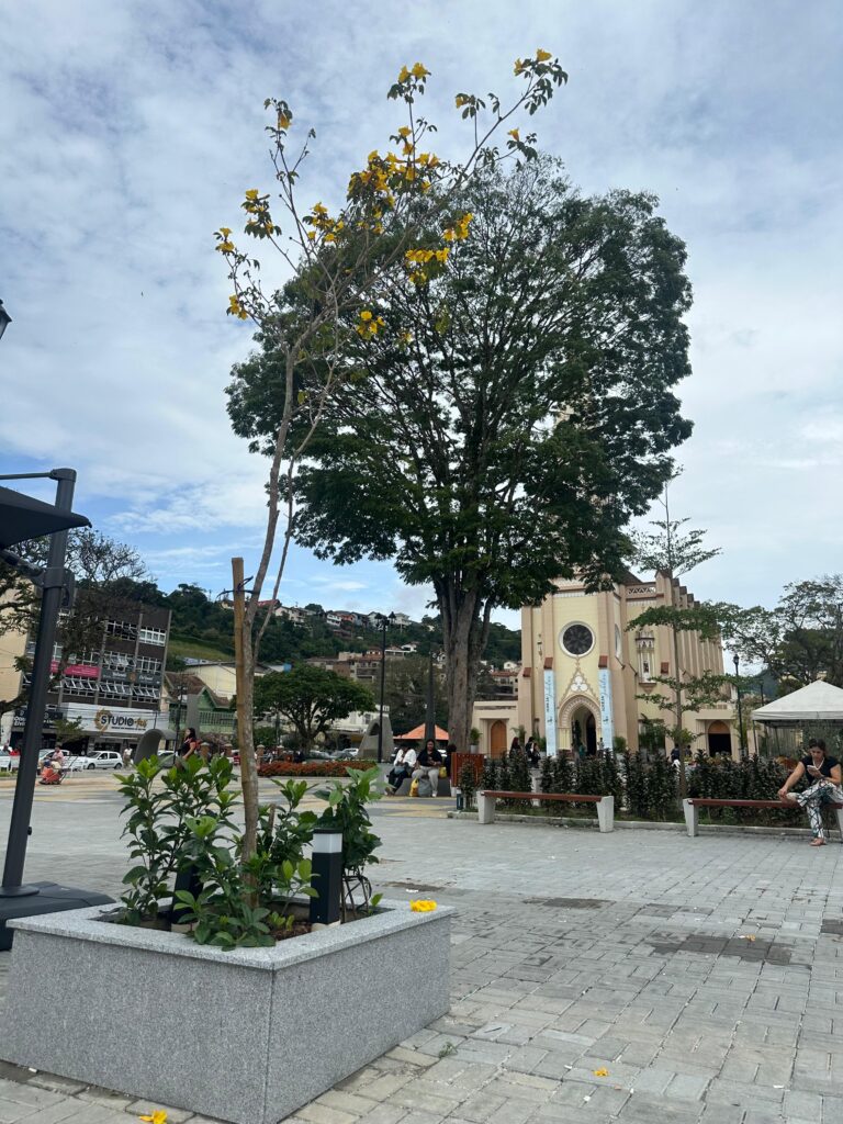 A praça da igreja Matriz de Santa Teresa está recebendo o plantio de mais de 20 ipês-amarelos em seu entorno, árvores conhecidas por embelezar Teresópolis durante o período de floração com seu lindo tom de amarelo. A iniciativa acontece após a revitalização da área e a previsão é de que novas mudas ainda sejam plantadas. Um dos exemplares já está florescendo, mesmo fora da época típica da espécie.