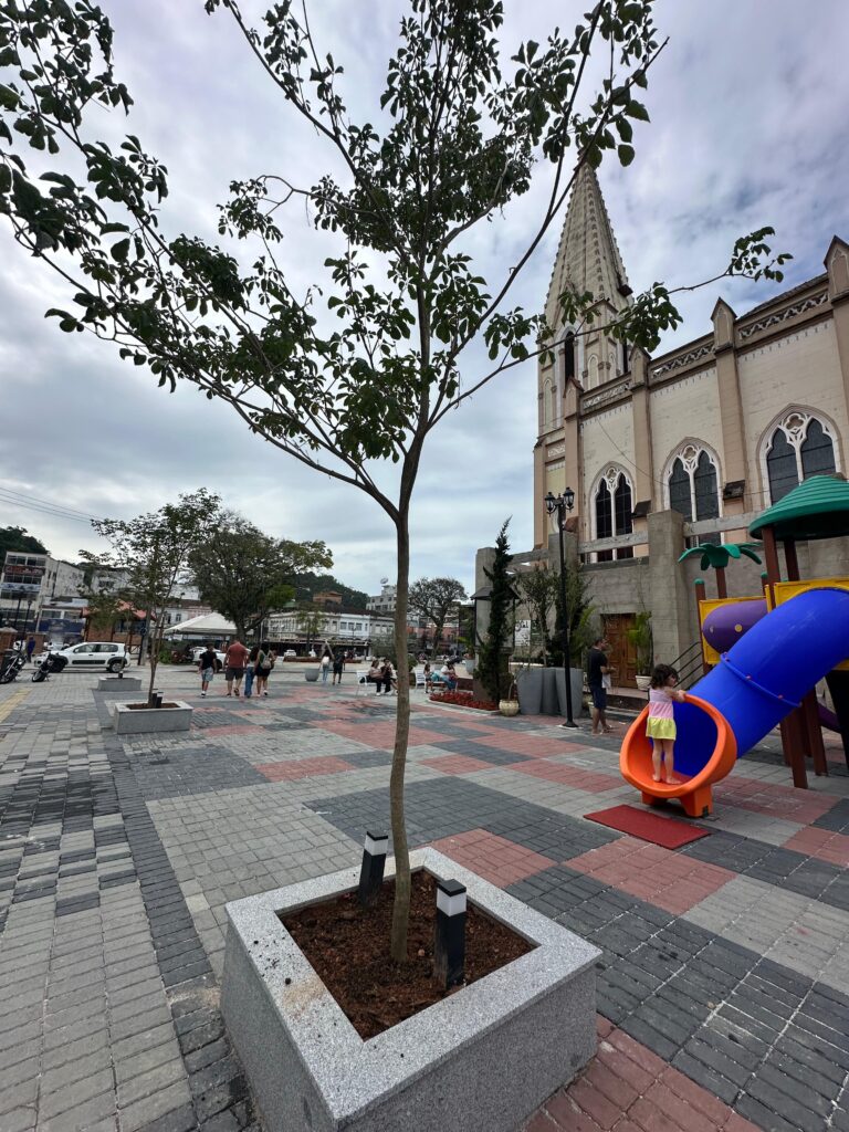 Praça com muitas mudas